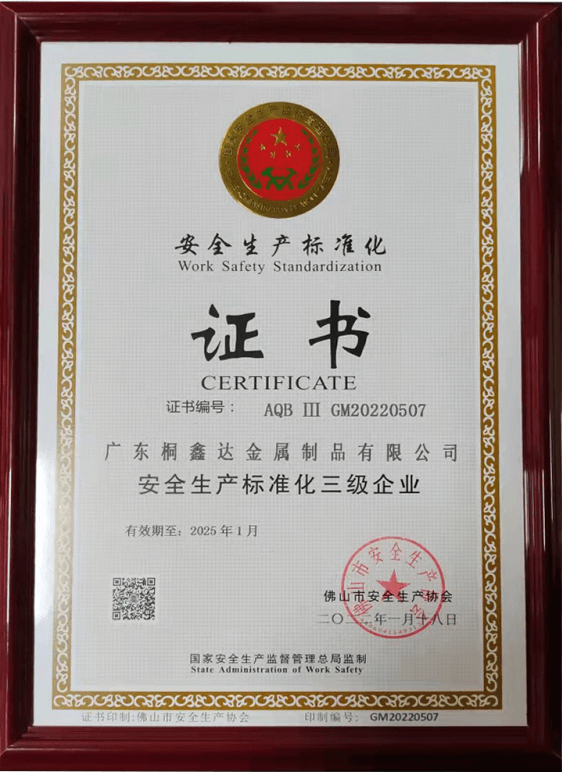 產品通過標準的質量管理認證,自有原材料儲備倉庫和穩定原材料供應商,入廠